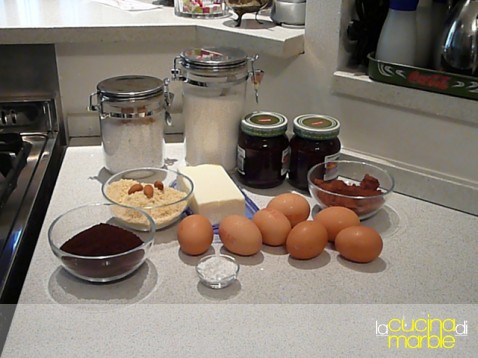 per il ripieno:sbattere le uova e aggiungere la marmellata, amalgamare