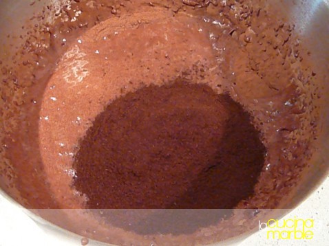 aggiungere il cacao, la polvere di caffè, le mandorle tritate e il lievitosi otterrà un composto fluido ma consistente